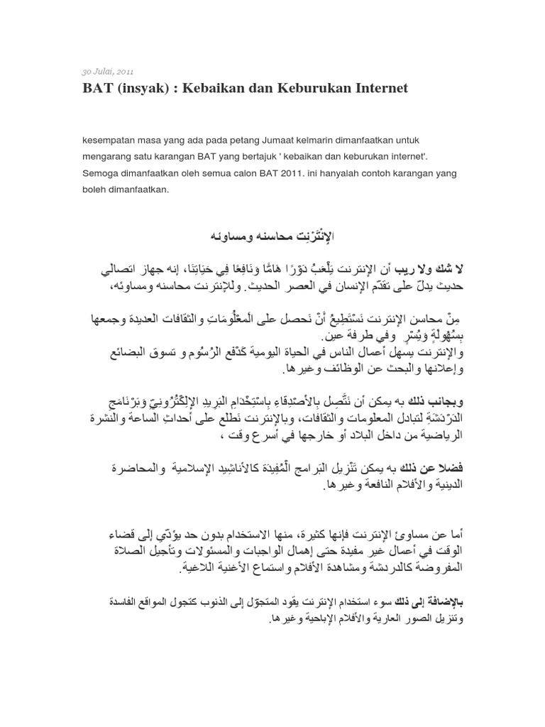 Contoh Karangan Kebaikan Dan Keburukan Internet Dalam Bahasa Arab